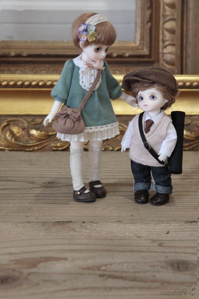 Outfit : シャツ、ベスト、タイ、ジーンズ、タイツ、ハンチング、スケッチバッグ (total 7pcs)